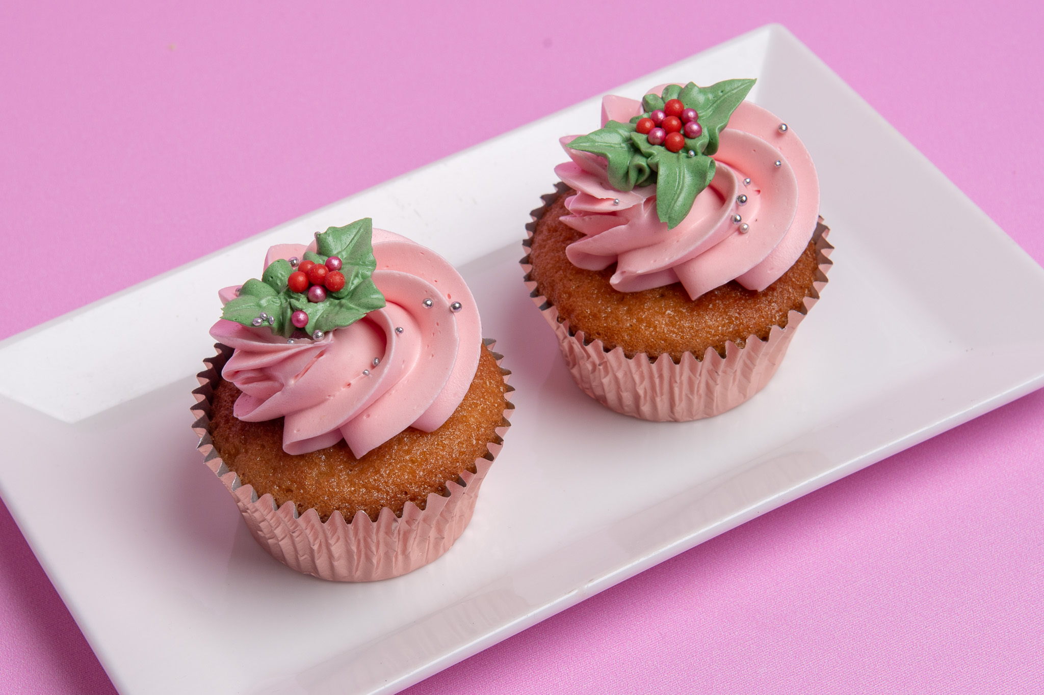 Ieders favoriete bonbon in taartvorm: de praliné taart. Een chocolade cake, gevuld met praliné botercrème en kerstig gedecoreerd.